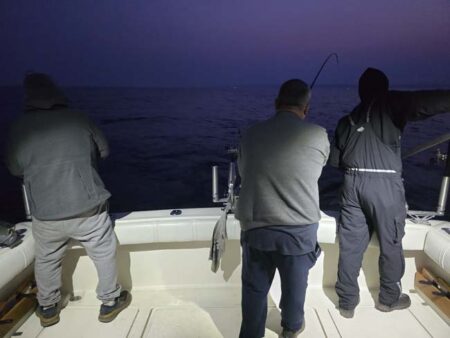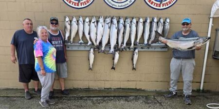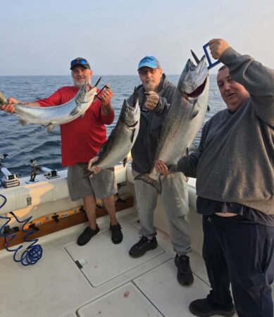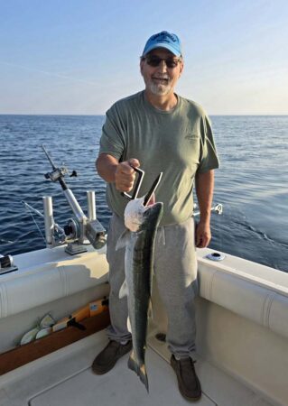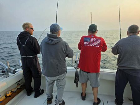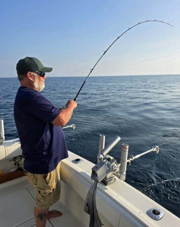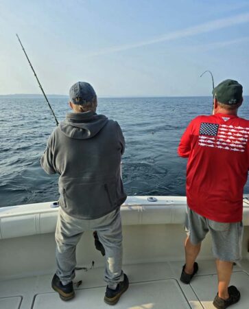 Port low wire out 100 took our last fish on an 8″ Blue Slice Spin Doctor/Blue Bubble Action Fly. Our crew was with us yesterday and had a fun couple days fishing with us. They booked the same two days next year. We use Morgan’s copper and wire, Dreamweaver Deeper Divers, Dreamweaver Ninja Boards, and Dreamweaver Premium Strips in all our meat rigs.
