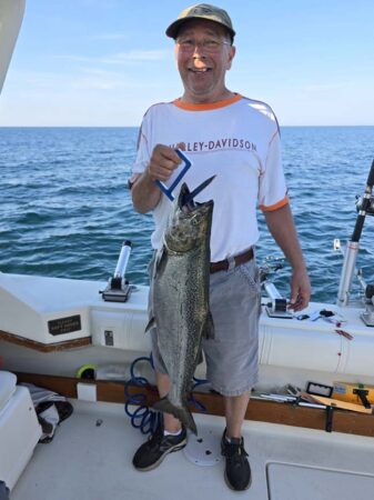 Our crew did a good job on the rods and enjoyed a beautiful day on Lake Michigan. We use Dreamweaver Deeper Divers, Dreamweaver Ninja Boards, Dreamweaver Premium Strips in all our meat rigs, and Morgan’s Tackle copper and wire.