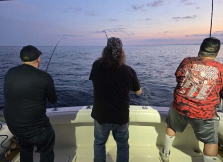 Chute down 80 took a King on an 11″ Custom DW White Crush Paddle/Pickled Sunshine Action Fly and down 90 with an 11″ Dreamweaver Kevin’s Girlfriend Paddle/Pickled Sunshine Action Fly. Our wire divers were hot. Port high wire diver out 200 went once with an 8″Paddle/Glow Fly and 3 times with a 10″ White Crush Dark Green Scale Spin Doctor/Pickled Sunshine Dreamweaver Meat Rig. Starboard high wire diver out 165 went twice with a White Crush Green Dot Paddle/Pickled Sunshine Action Fly and once out 235 with an 8″ Green Stud Flip Fin Paddle/Illusion Fly. Port low wire diver out 140 went 5 times with an 8″ White Slick Spin Doctor/Pickled Sunshine Action Fly. Starboard low wire went 3 times out 165 with an 8″ White Crush Black Dot Spin Doctor/Pickled Sunshine Action Fly.
