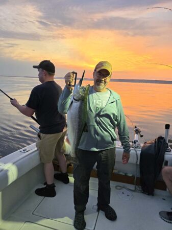 Port 250 copper took a big King on an 8″ Chrome Two Face Spin Doctor/Pickled Sunshine DW Meat Rig. It was a fun trip with plenty of action. We use Morgan’s Tackle copper and wire, Dreamweaver Deeper Divers, Dreamweaver Ninja Boards, and Dreamweaver Premium Strips in all our meat rigs.