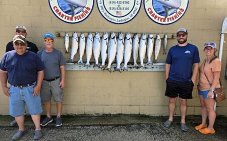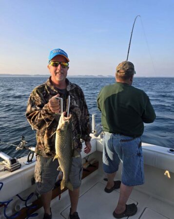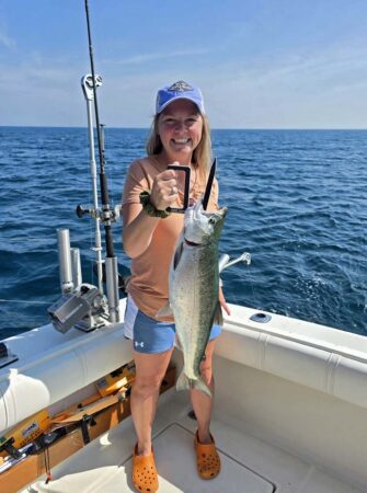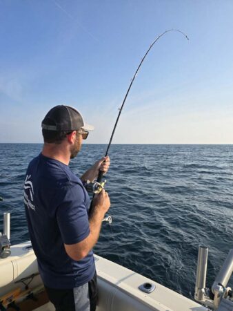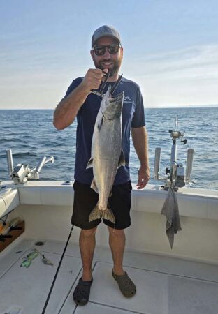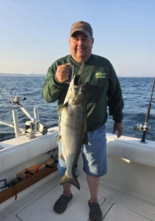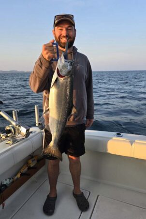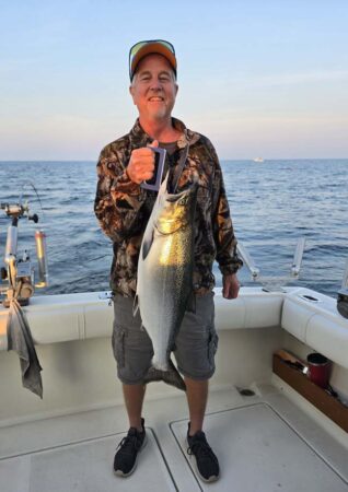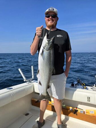 Some pictures from our trip today. Two young guys had a good time fighting some big ones. Regular fishing reports will resume Sunday night after the Ludington Offshore Classic.