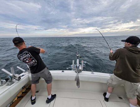 He was a real trooper and hung in there. We cut the trip a little short to give him a break. We use Morgan’s Tackle copper and wire, Dreamweaver Ninja Boards, Dreamweaver Deeper Divers and Dreamweaver Premium Strips in our meat rigs.