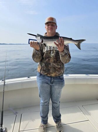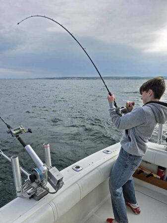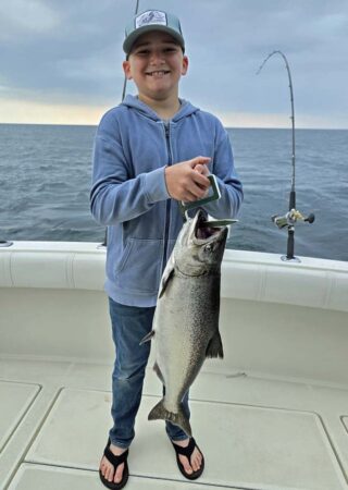 That was our only rigger bite. We took a small King on a 225 copper with a DW Blue Spotted Dolphin. Things pretty much went dead for us after that. We took one smaller King on a 5 color core with a SS Gold Rasta Goose. We had a fun crew. A nice family out fishing with their Dad on Fathers Day. We use Morgan’s Tackle copper and wire, Dreamweaver Deeper Divers, and Dreamweaver Ninja Boards.